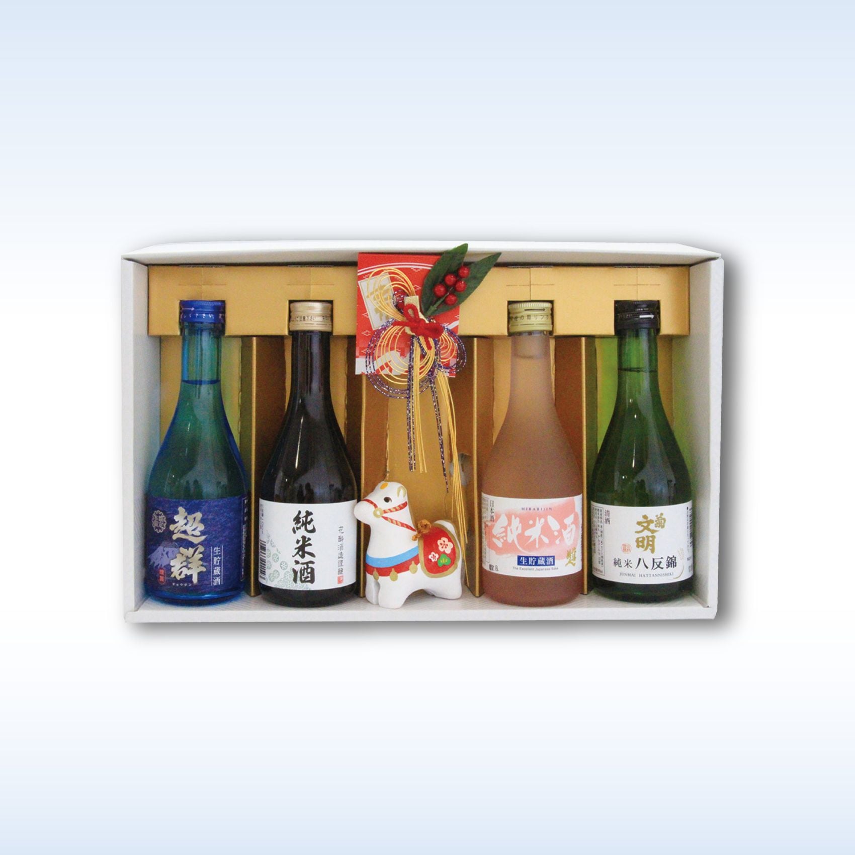 令和8年の干支「午」で迎えるお正月に向けて、今年も4蔵元飲み比べセットをご用意いたしました。毎年、ご好評いただいている商品です。